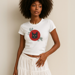 • 90s-style baby tee with a boxy silhouette and slight cropped hem