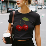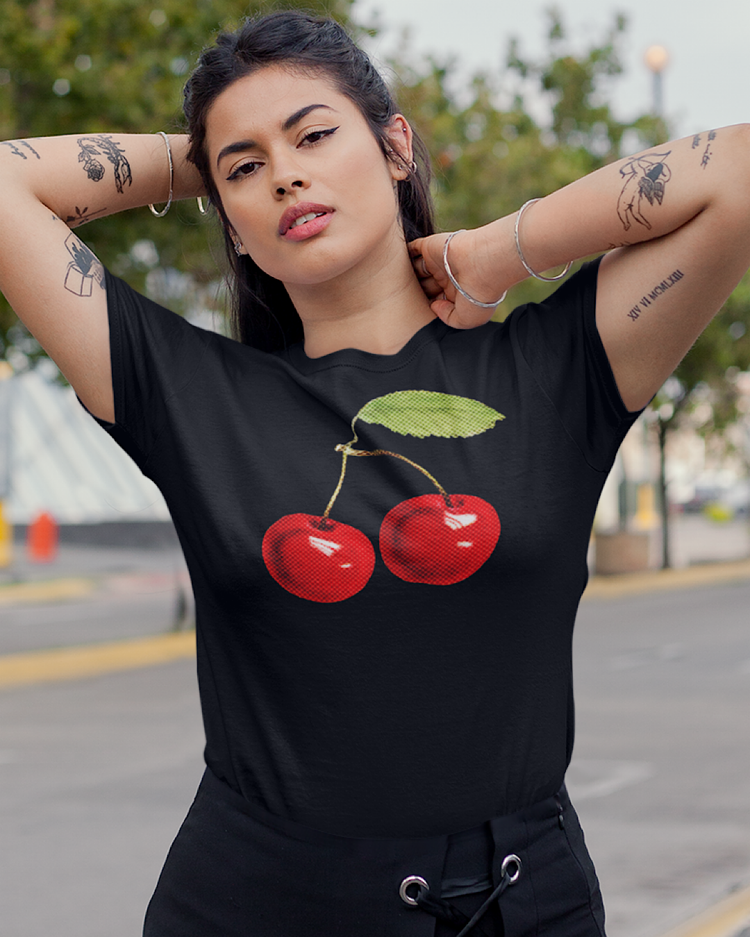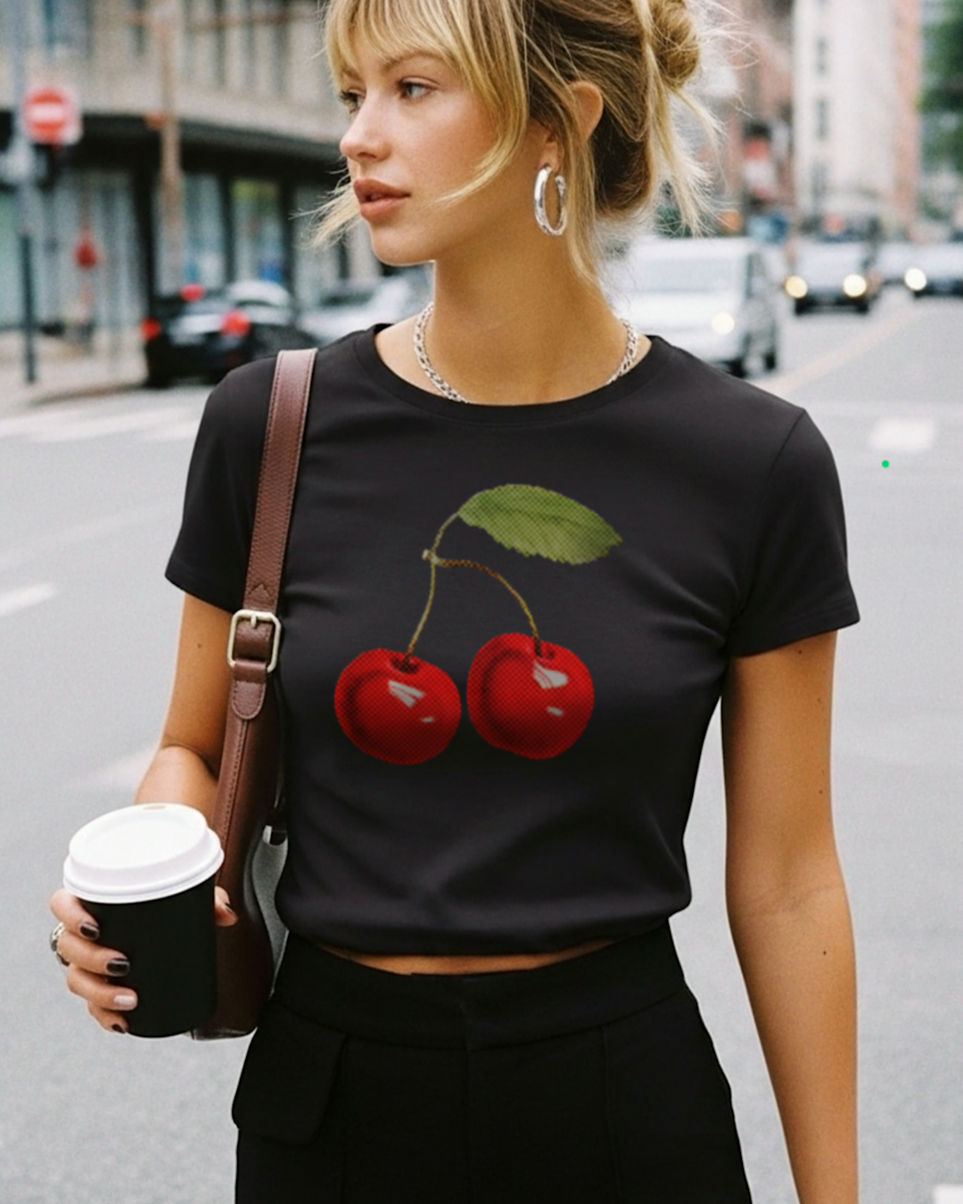 - 90s-style baby tee with a boxy silhouette and slight cropped hem