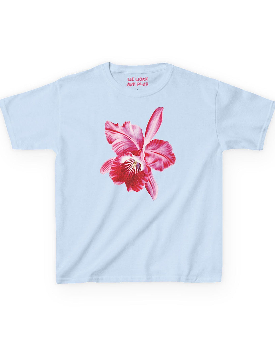 - 90s-style baby tee with a boxy silhouette and slight cropped hem