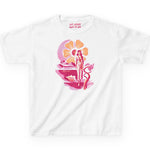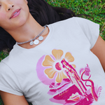 - 90s-style baby tee with a boxy silhouette and slight cropped hem