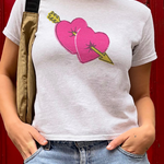 - 90s-style baby tee with a boxy silhouette and slight cropped hem