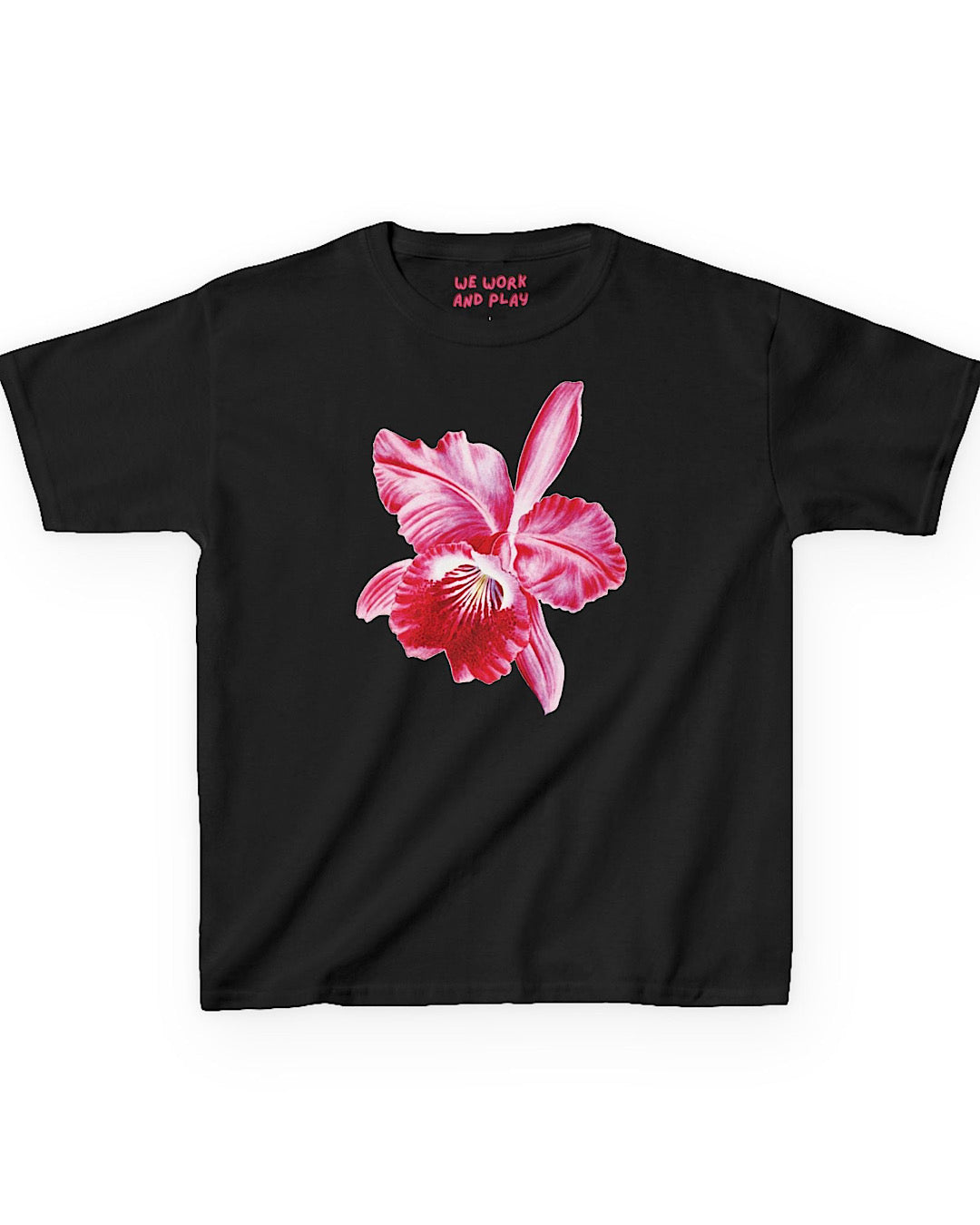 • 90s-style baby tee with a boxy silhouette and slight cropped hem