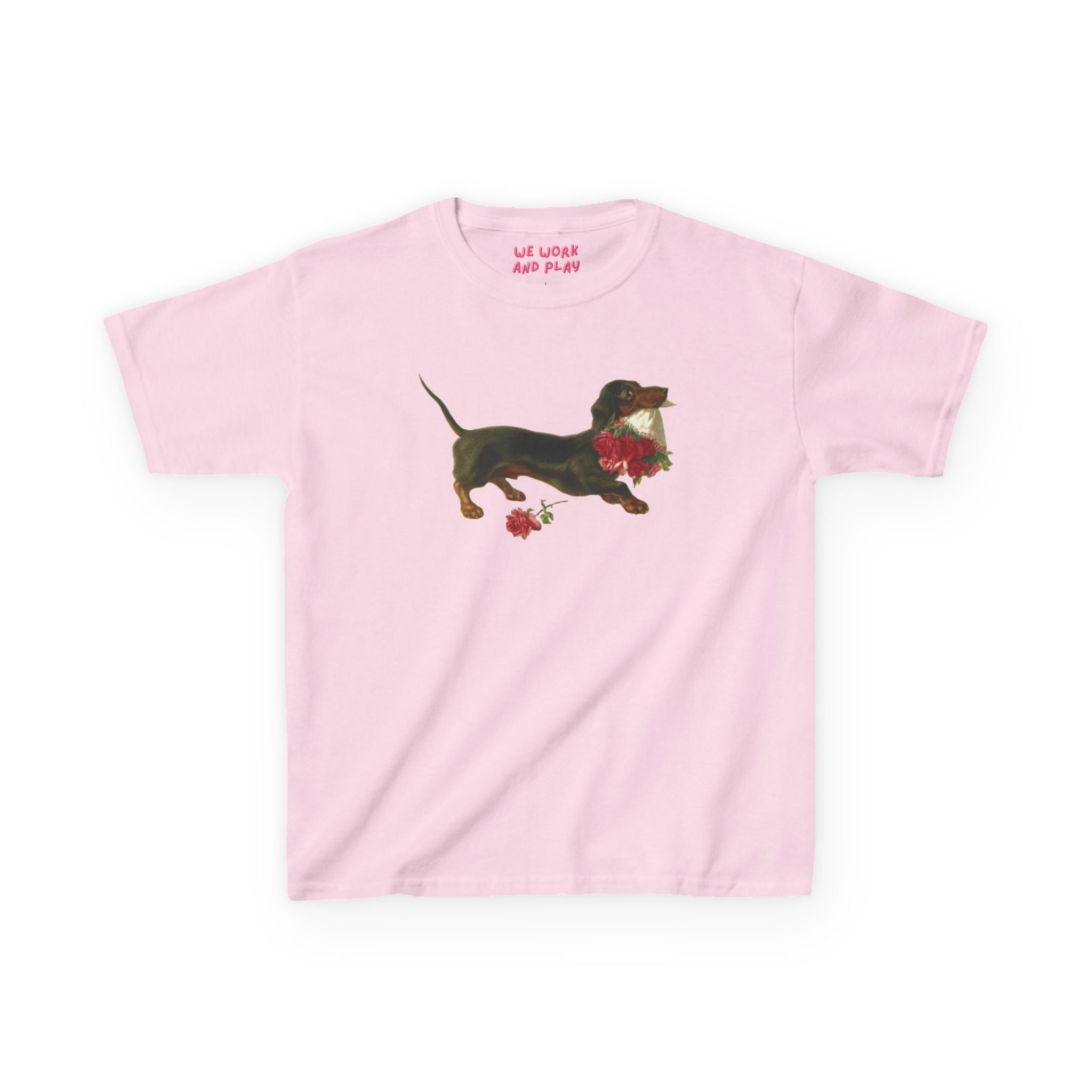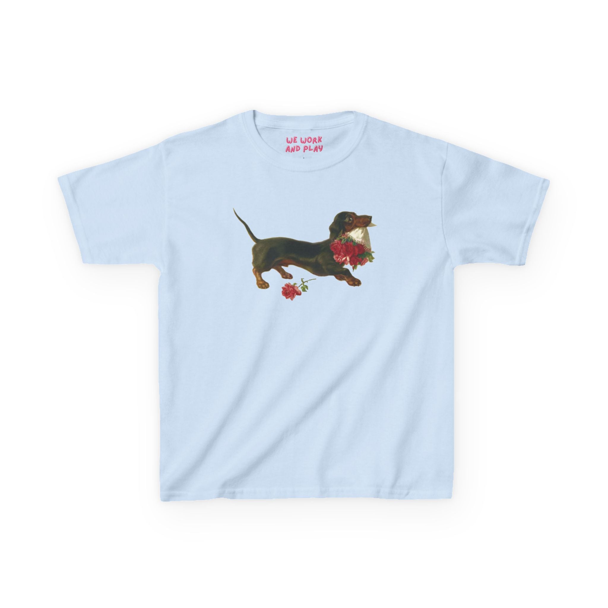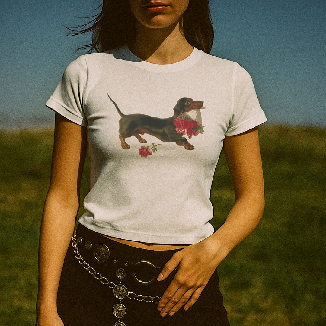 - 90s-style baby tee with a boxy silhouette and slight cropped hem